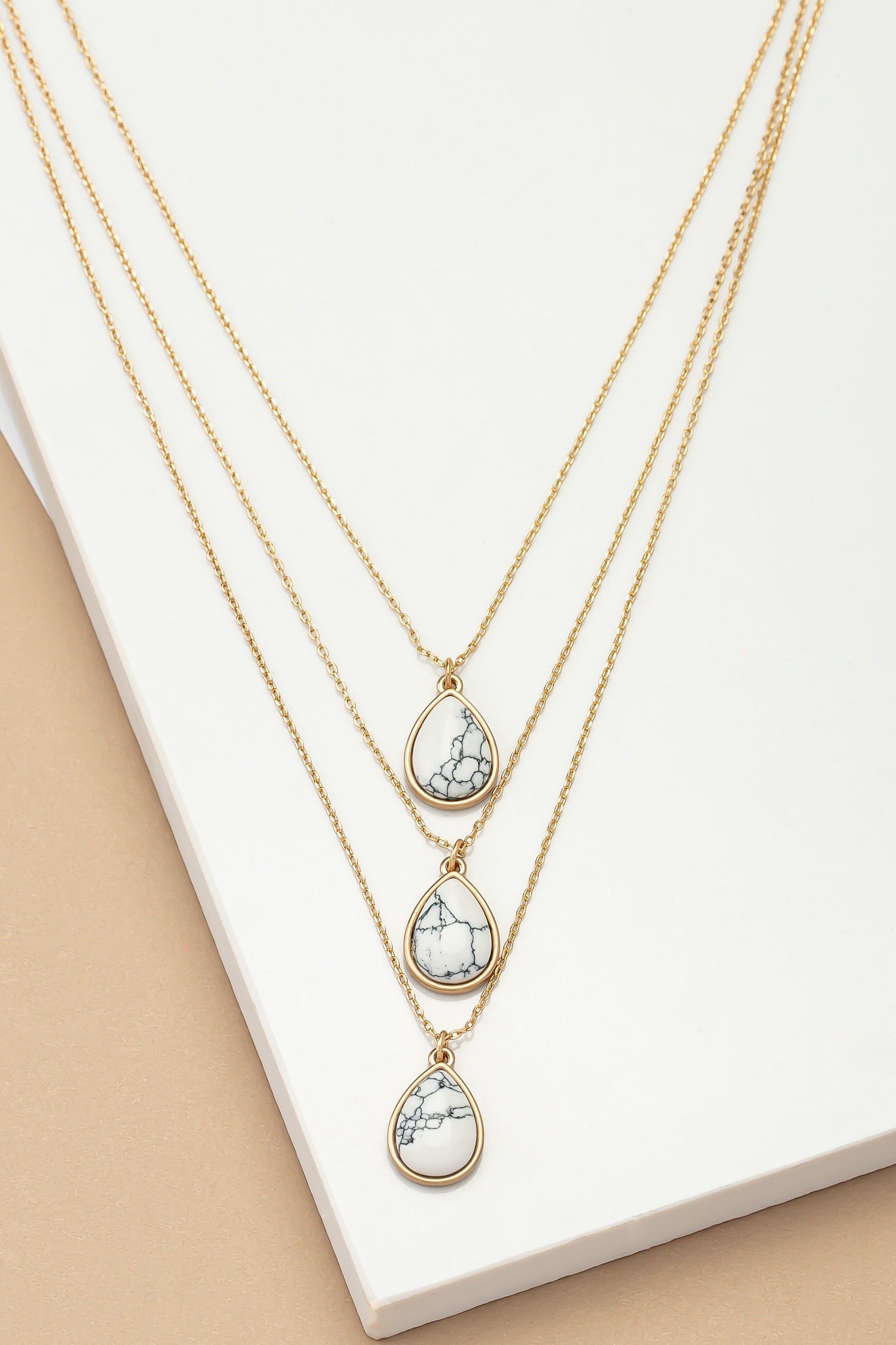 Three-layer teardrop stone pendant necklace.