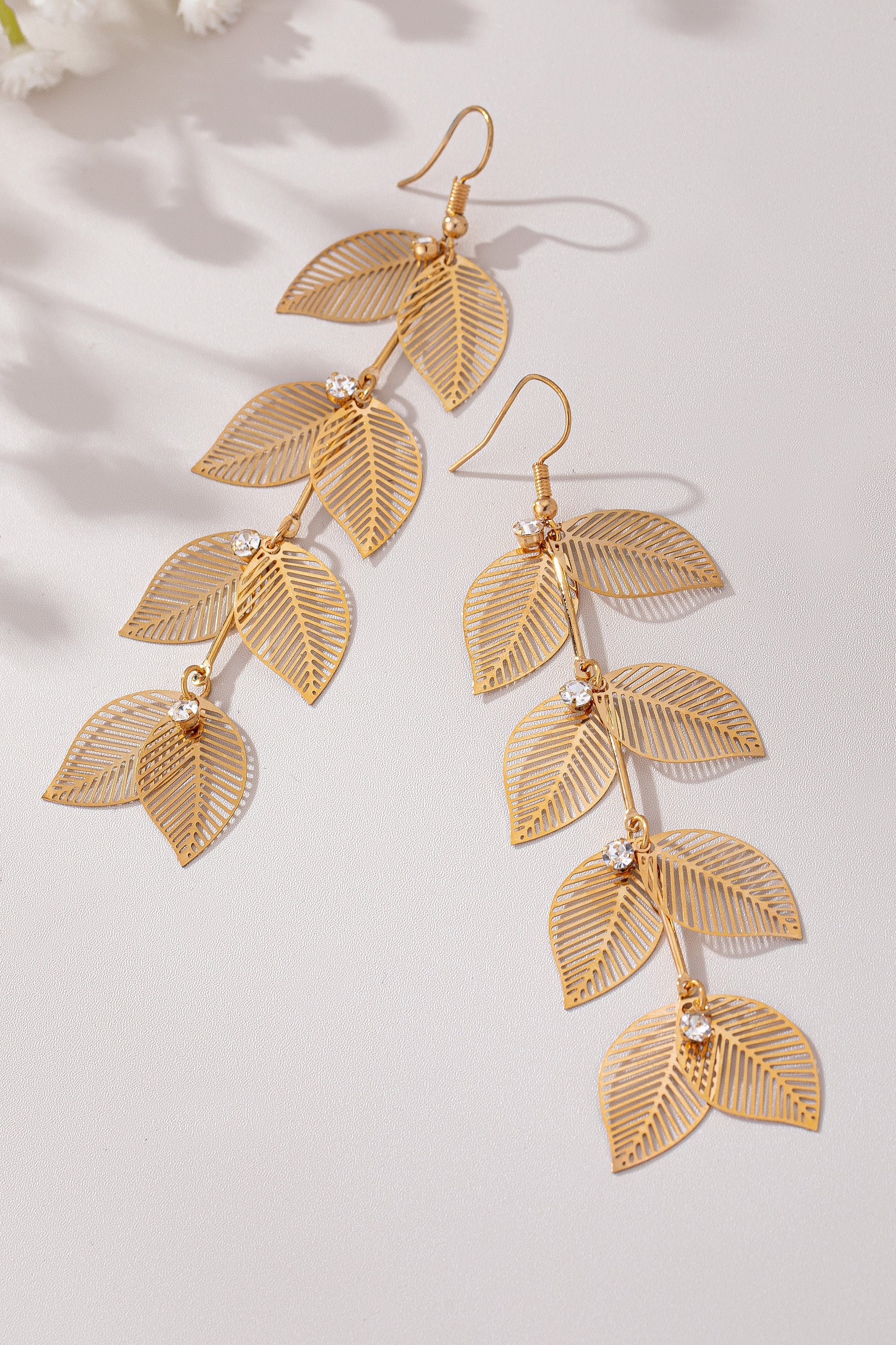 Delicate cascading leaf drop earrings featuring finely stamped leaf patterns.