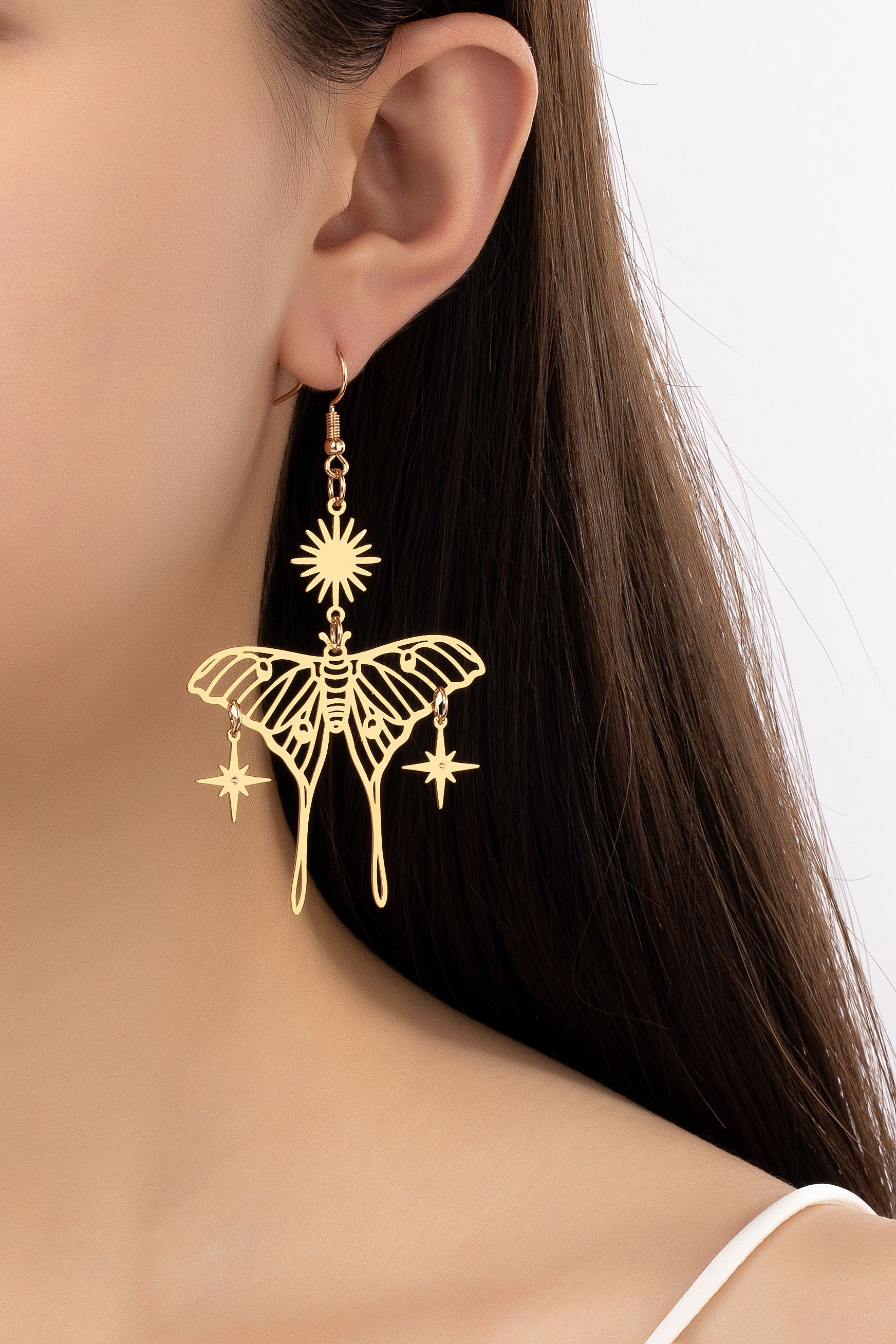 Luna Moth Drop Star Earrings