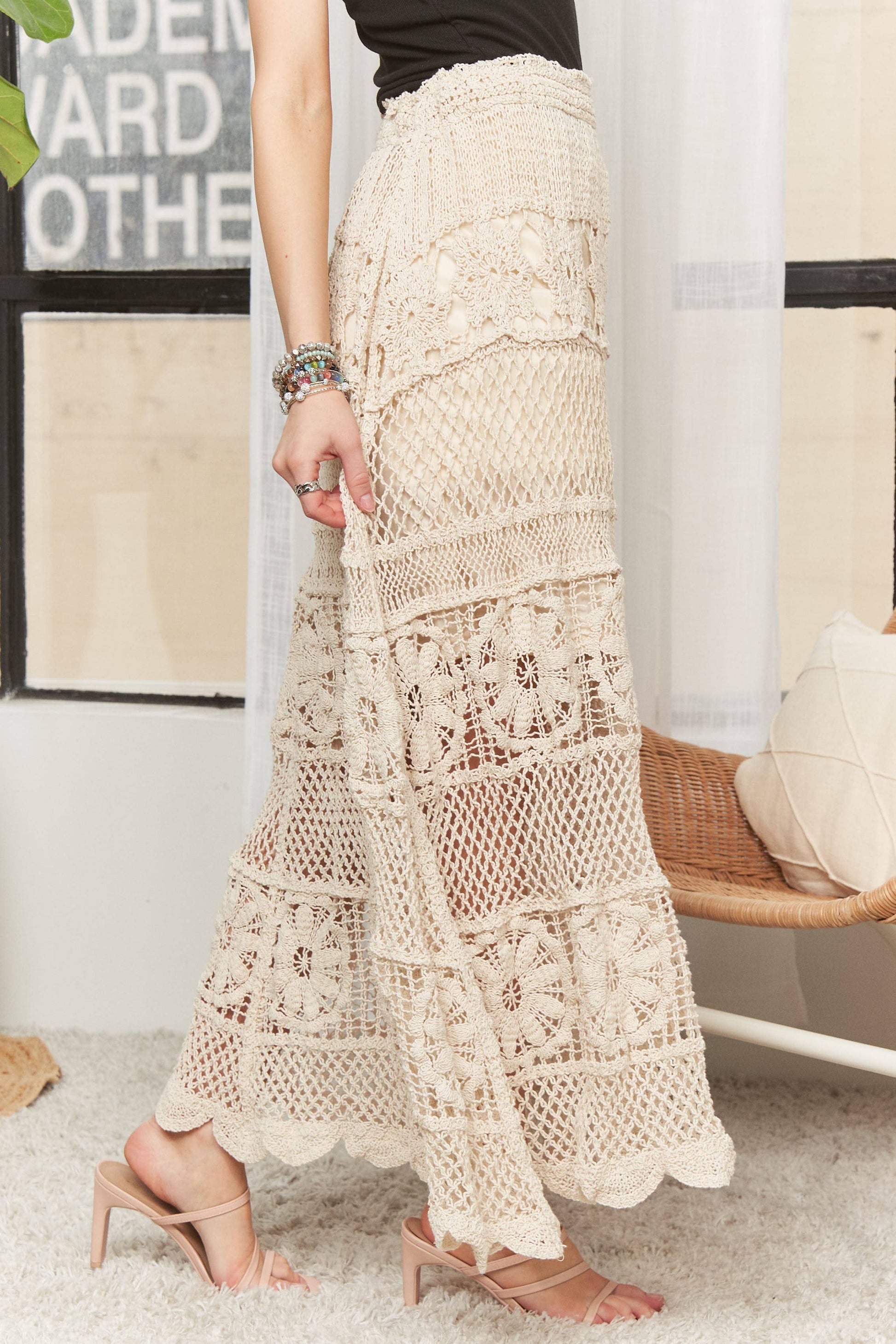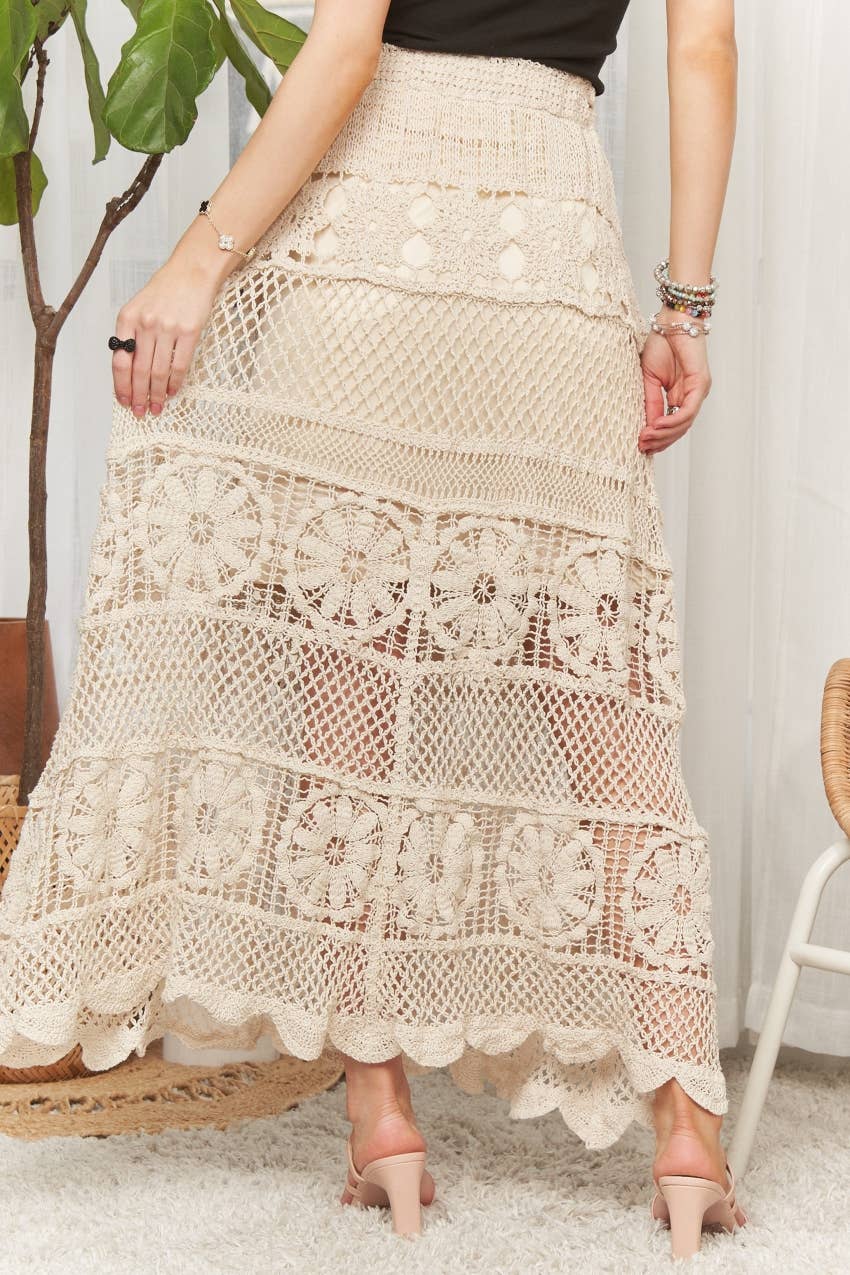 Crochet Lace Maxi Skirt w/ Elastic Waistband