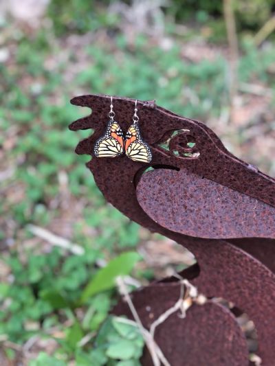 Laser Cut Wood Earrings, Made from sustainably sourced wood and 90% recycled display cards. Stained with water-based dye. Ear wires are silver-finished 304L stainless steel, hypoallergenic, and enhanced with a new, smooth, and consistent electrophoretic coating that resists tarnishing.