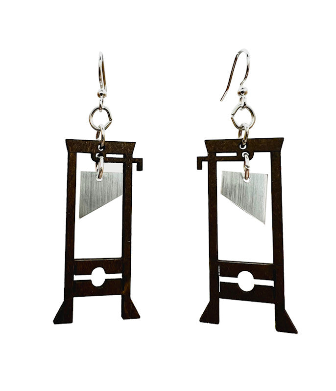 Laser Cut Wood Earrings, Made from sustainably sourced wood and 90% recycled display cards. Stained with water-based dye. Ear wires are silver-finished 304L stainless steel, hypoallergenic, and enhanced with a new, smooth, and consistent electrophoretic coating that resists tarnishing.