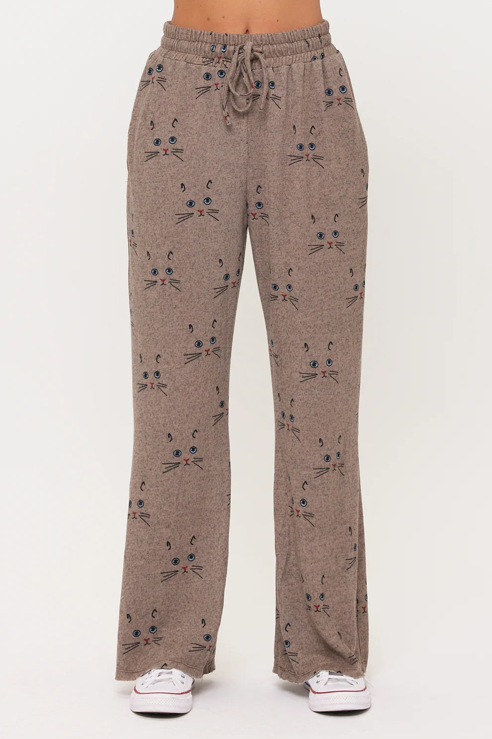 Embrace purr-fect comfort and charm with our Cat Whiskers Print Tunic Hoodie/Flare Pants! This incredibly cozy outfit features a captivating all-over print of stylized cat faces, with their whiskers and bright eyes creating an endearing pattern. The whimsical feline portraits are set against a soft, heathered background, giving it a subtle yet charming appeal.