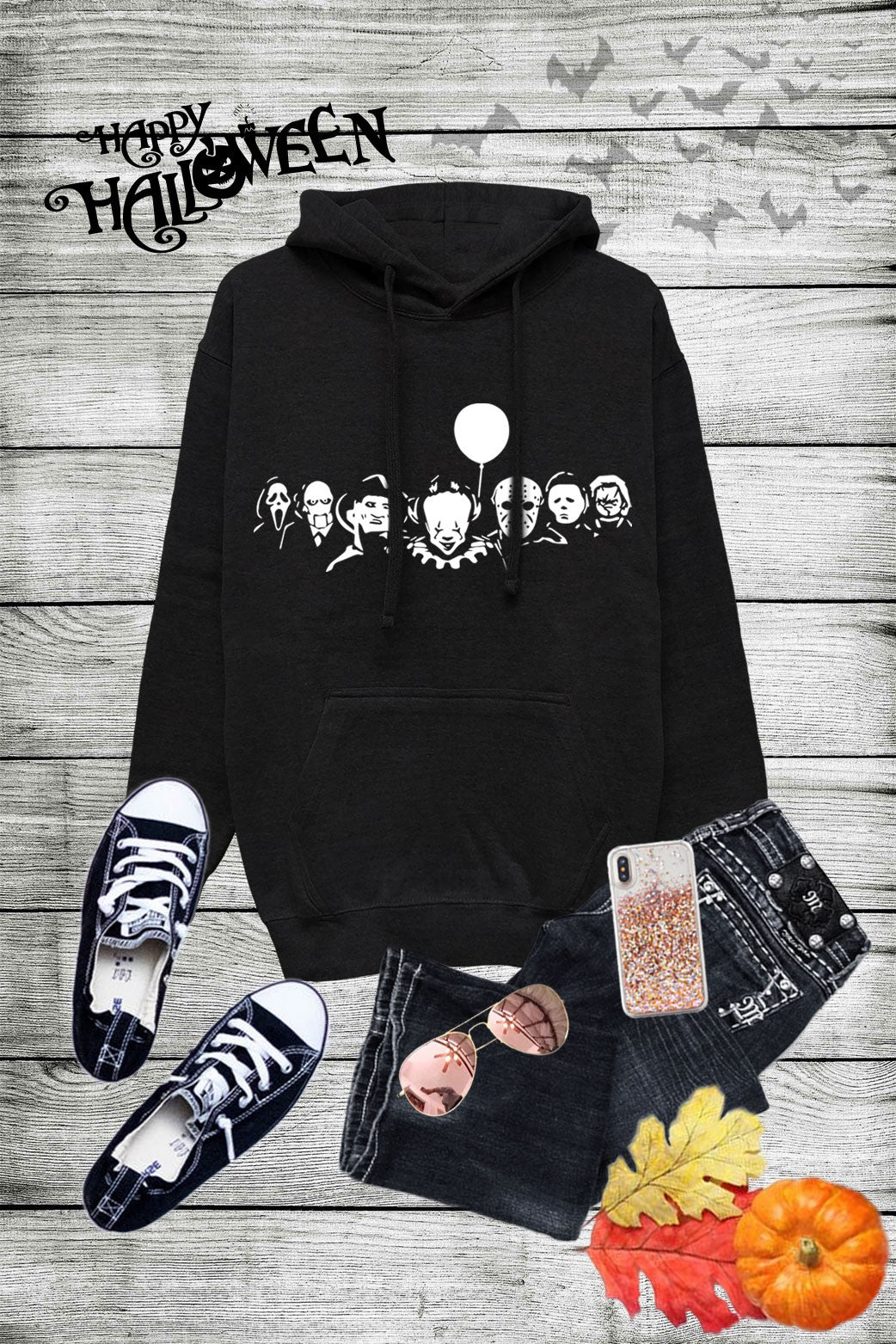 Halloween Horror Movie Killers, Graphic Screen-Printed French Terry Fleece Pullover Hoodie