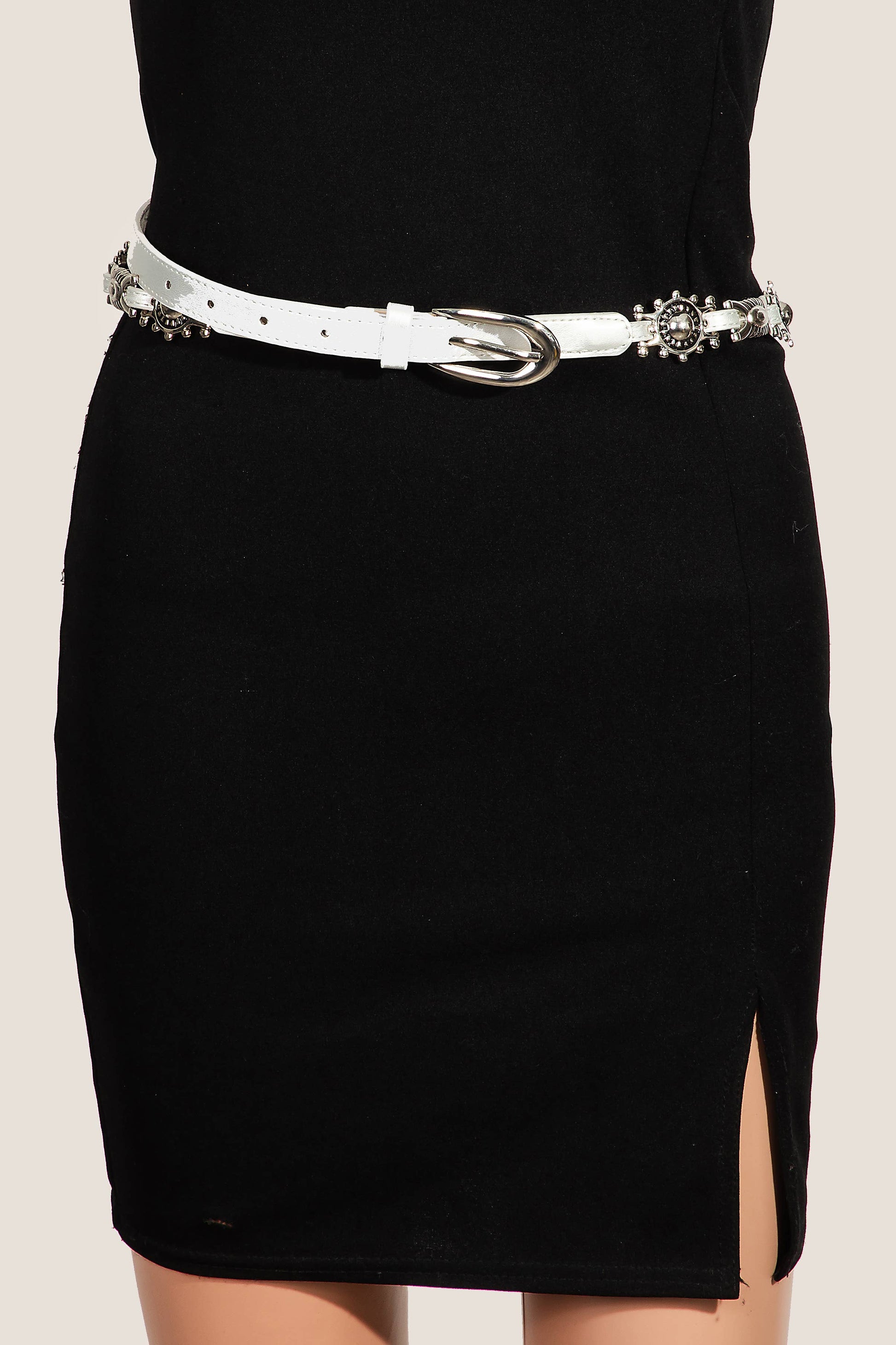 Perfectly polished and endlessly versatile, this belt possesses a fine metallic western faux leather decor