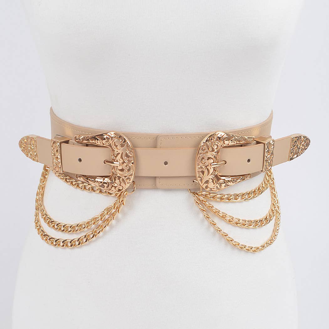 Layered Chain Stretch Belt with Double Buckle