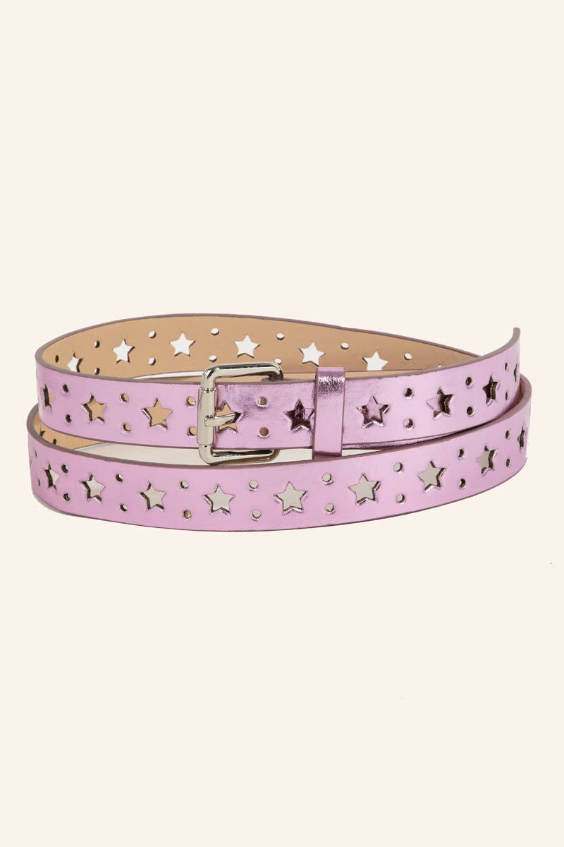 Perfect for any occasion, this belt showcases an alluring multi star notch fashion design. Make a lasting impression with this versatile belt, a subtle yet impactful addition to your fashion repertoire. Available in BL, G, PK and S. This item is sold in packs of 1.