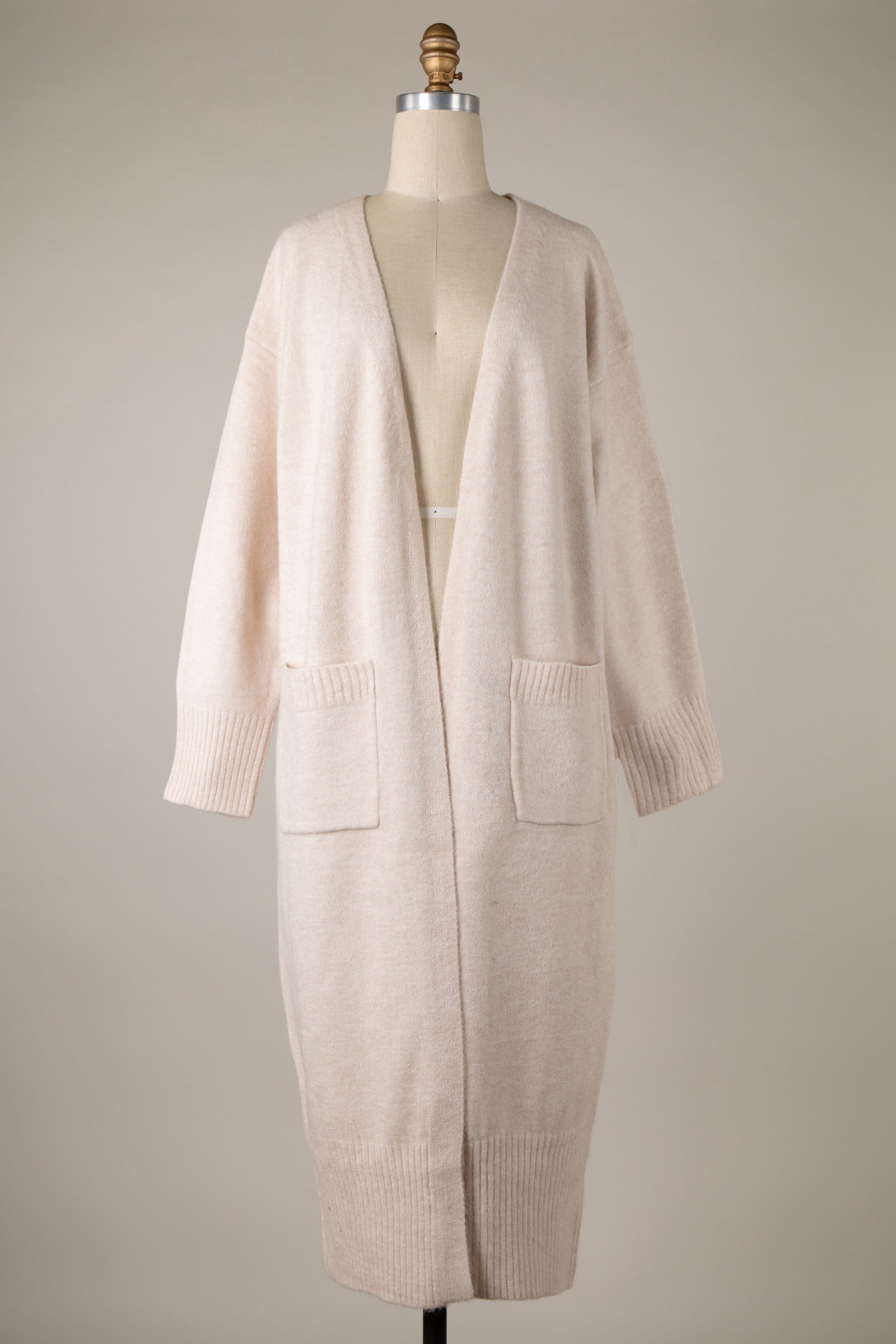 Smooth Long Soft Basic Cardigan with Ribbed Trim