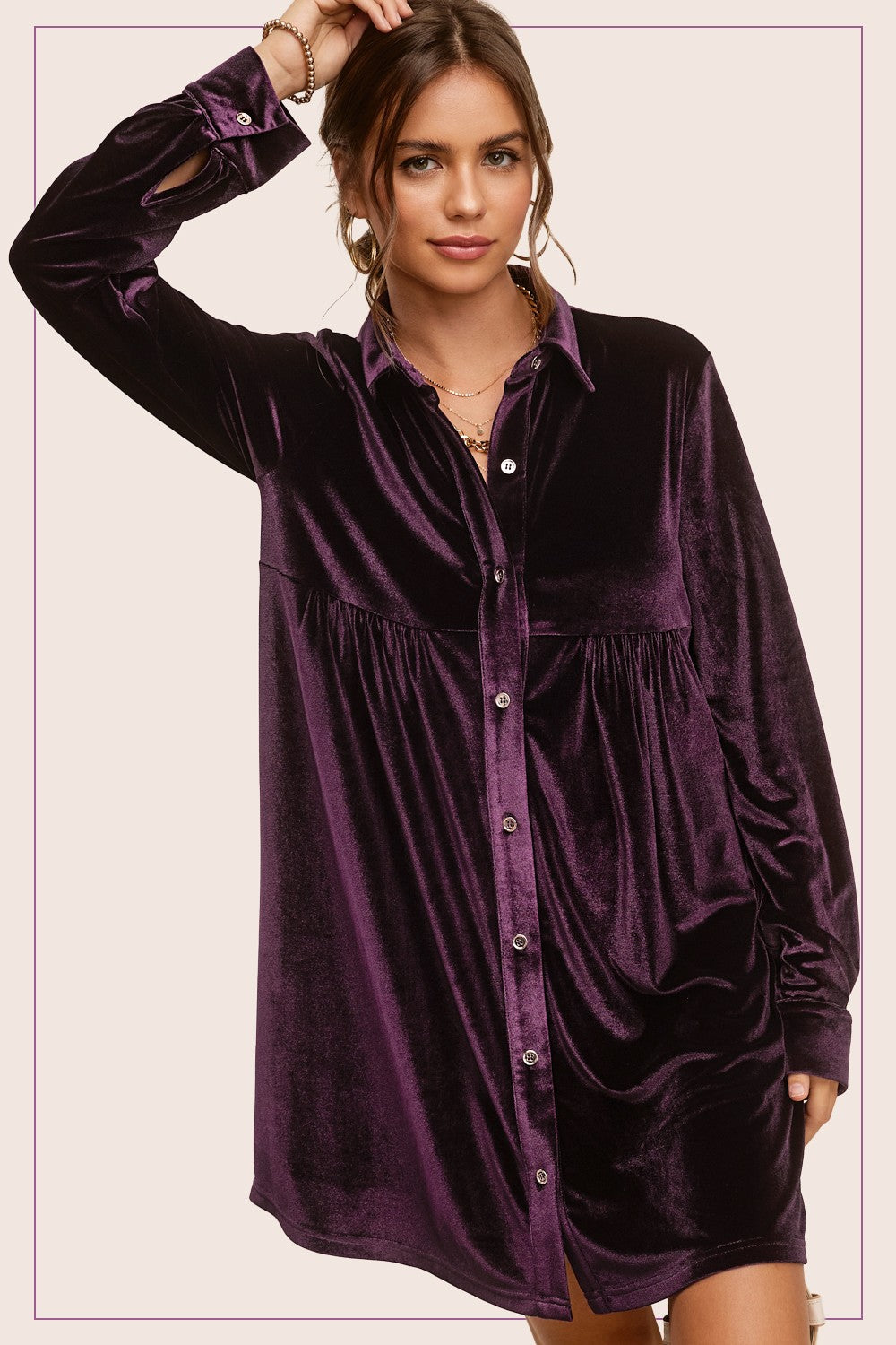 Just as versatile as it is vintage-inspired, this goes-with-anything velvet mini dress is featured in a relaxed fit with button-front closure and a classic collar. You can either dress up or down with this gorgeous style.