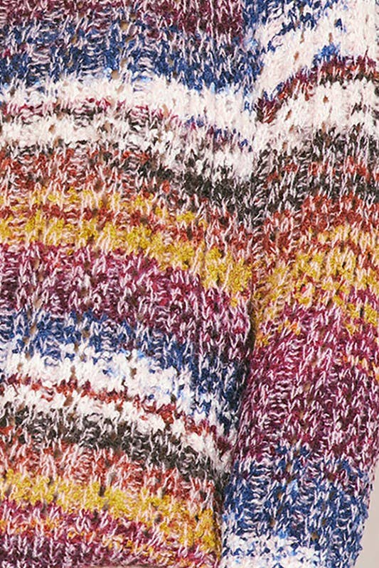 Multicolored knit sweater with round neckline and slightly cropped fit